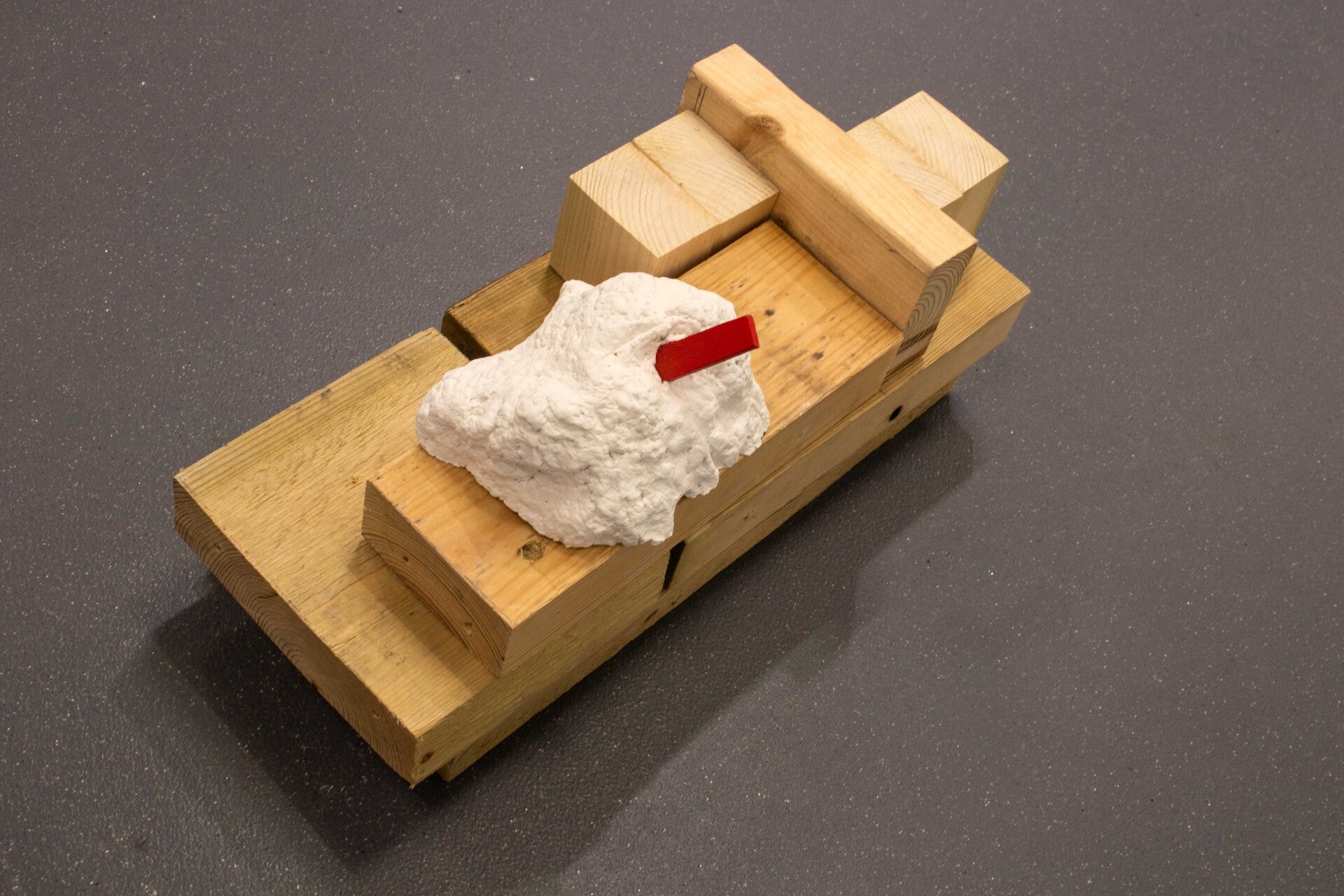 Wood, paper pulp, plaster, stone, sea brick, charcoal, acrylic & flour.